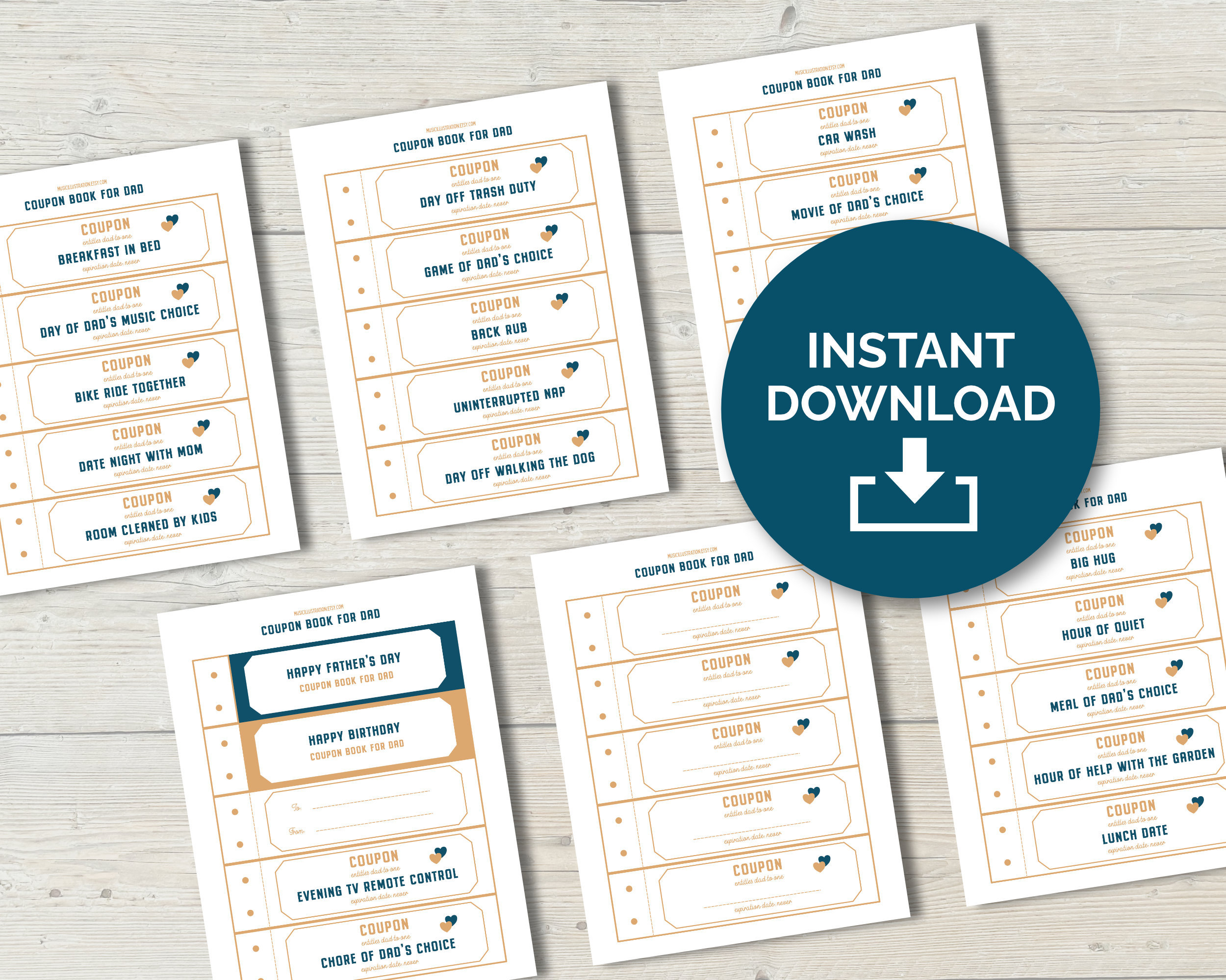 Birthday or Fathers Day Coupon Book Printable Dad Coupons Etsy