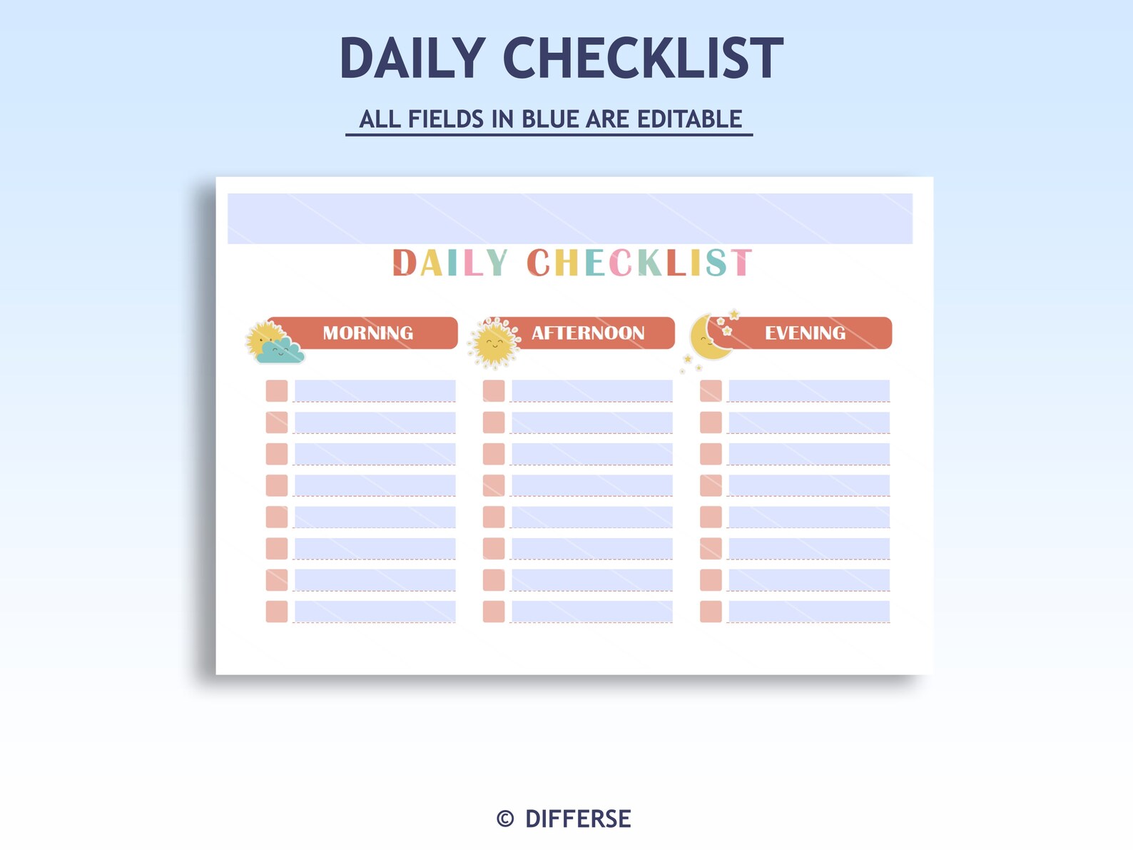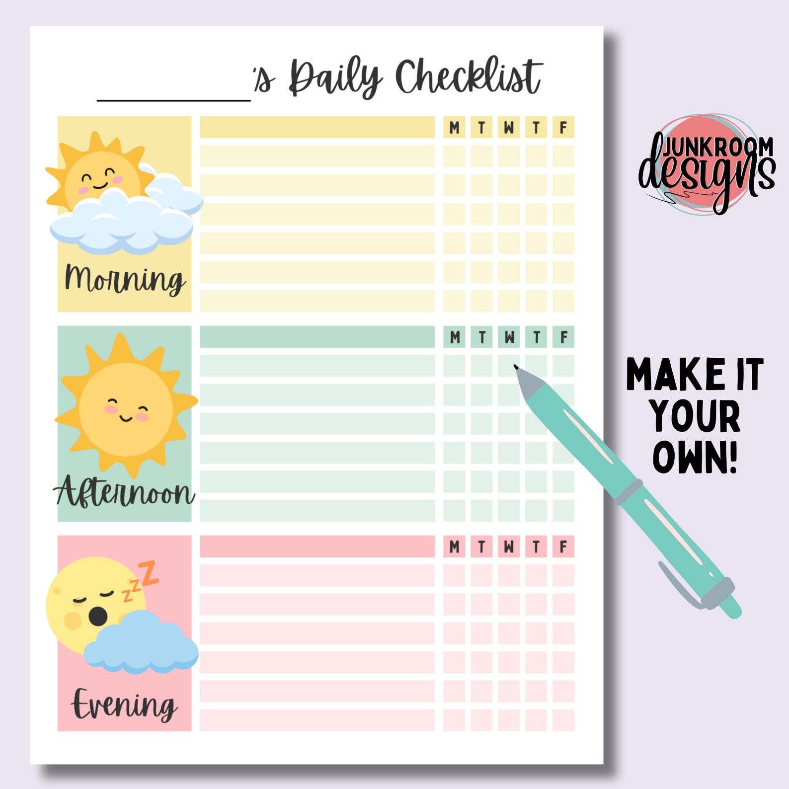 Kids Chore Chart PRINTABLE Chore Chart for Child EDITABLE Morning and