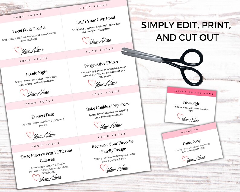 Editable and Printable Date Night Cards Date Night Coupons Date Night
