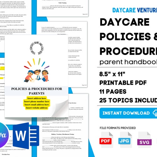 Daycare Policies and Procedures / Childcare Center Printable Etsy in