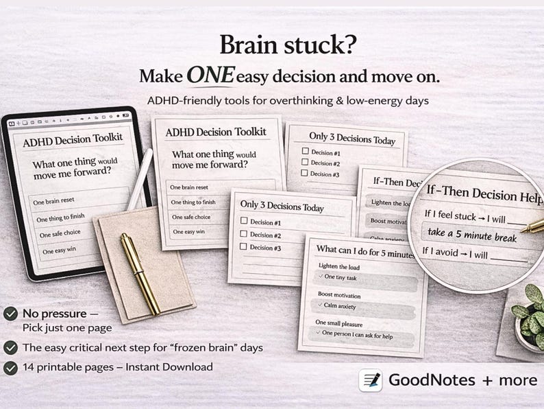 ADHD Digital Planner for Decision Fatigue Overthinking Relief