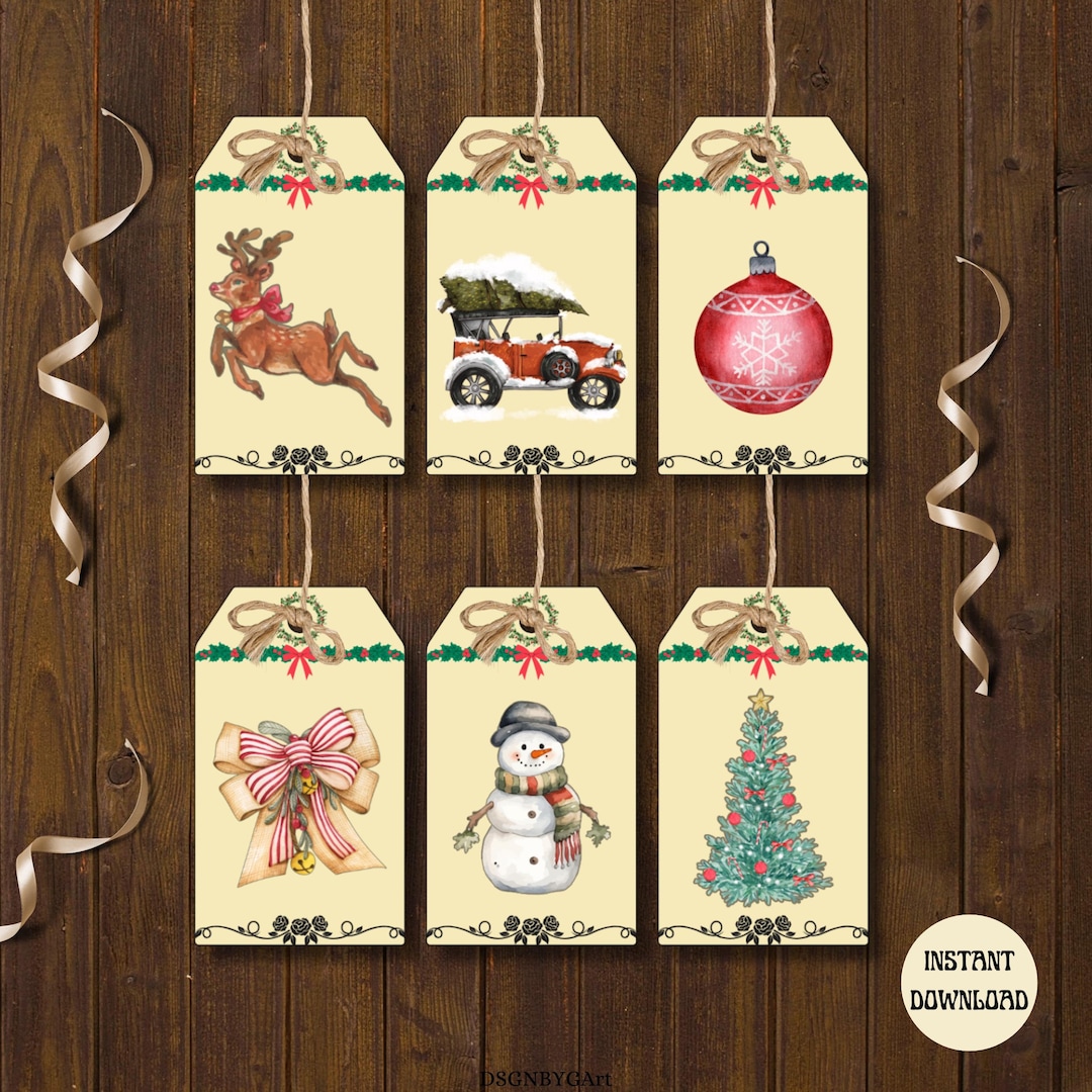 Christmas Tags Printable Gift Tags for Christmas Vintage Tags