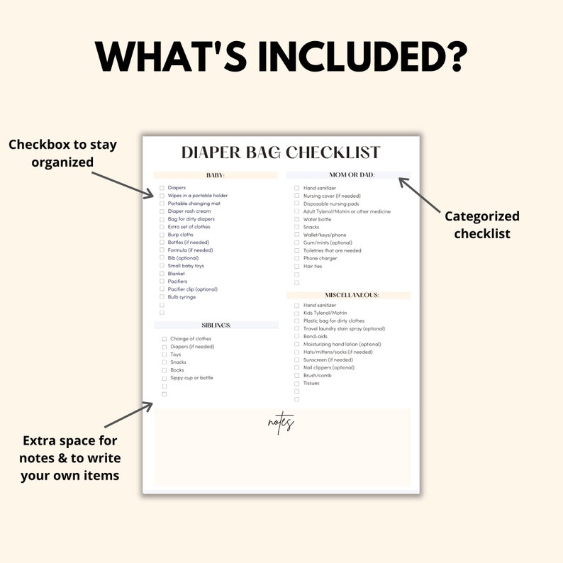 Diaper Bag Checklist and Checklist Etsy