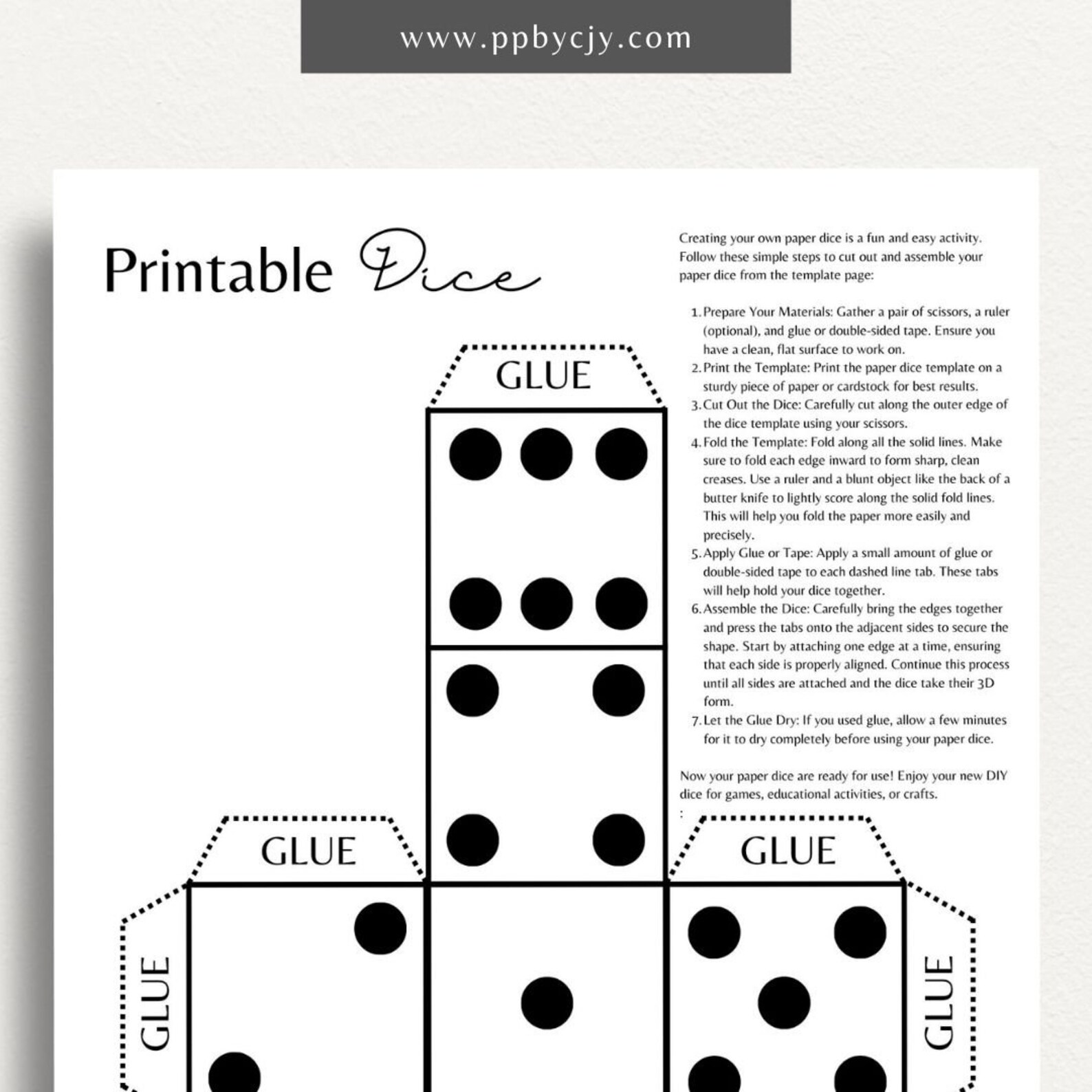 Dice Printable PDF Template DIY Paper Dice for Games Learning