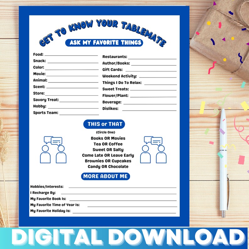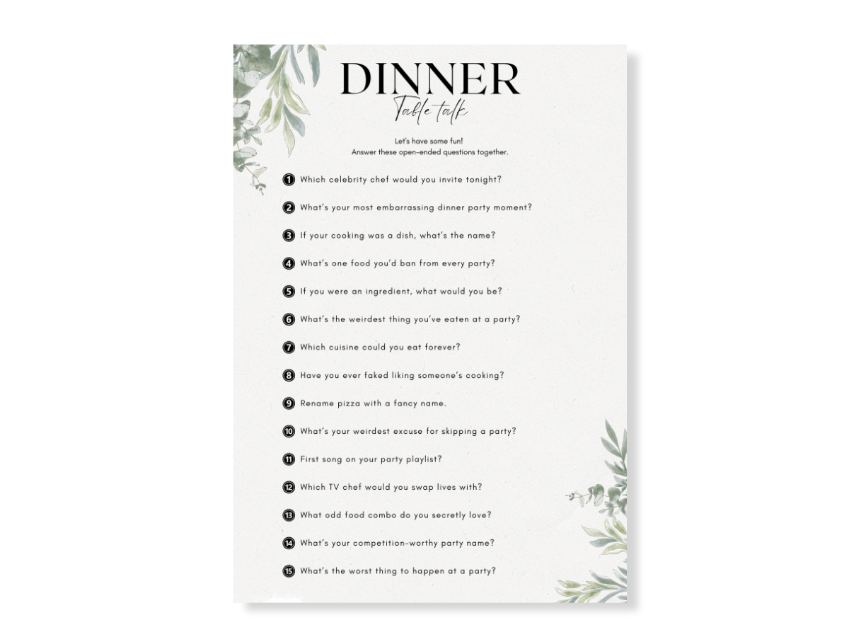 Dinner Party Table Talk Game Printable Digital Download Print Play