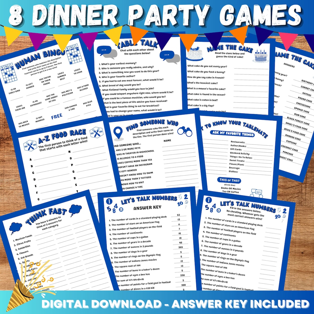 8 Printable Dinner Party Games for Adults Dinner Table Party Etsy