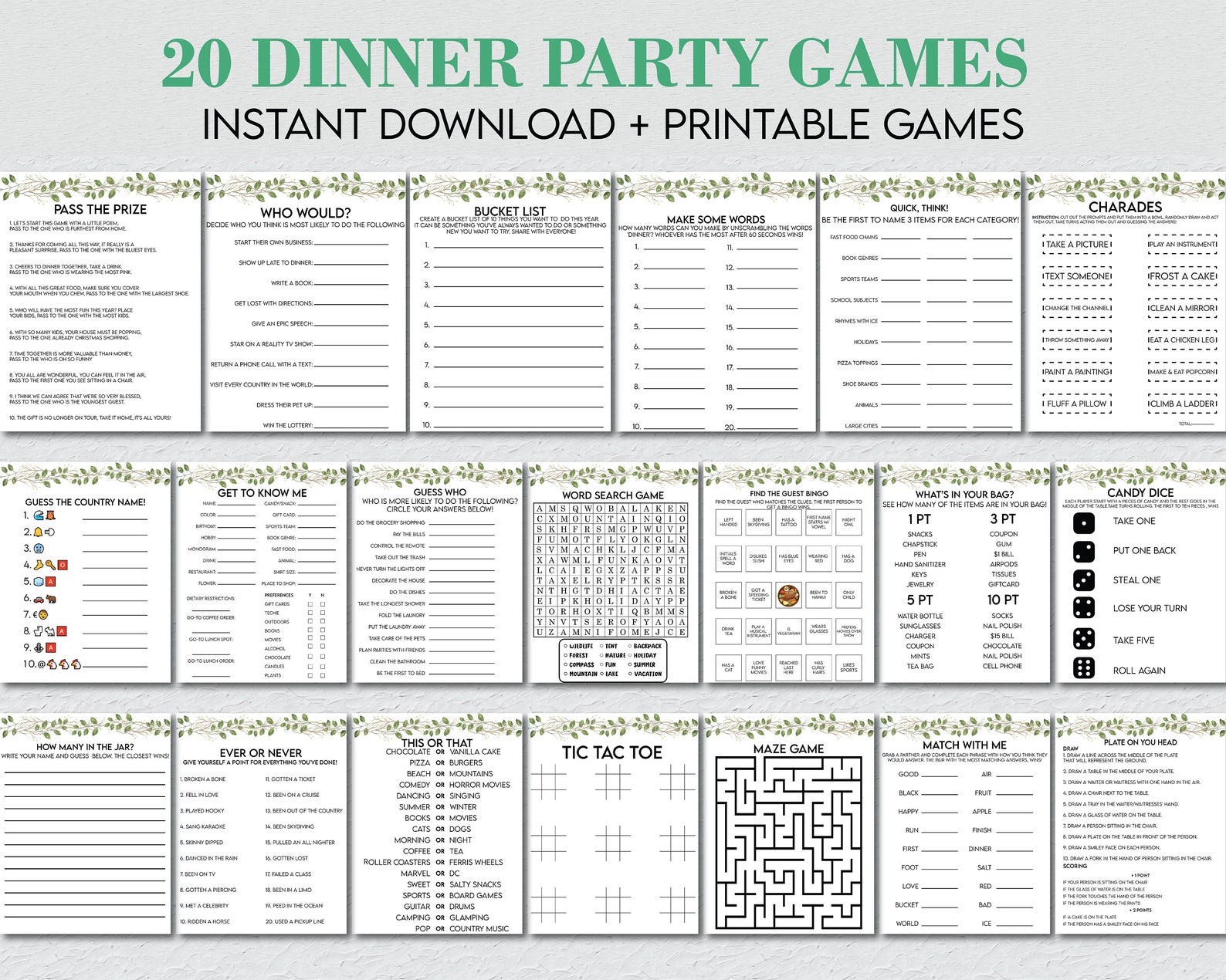 Dinner Party Games Bundle 20 Printable Fun Activities for Family