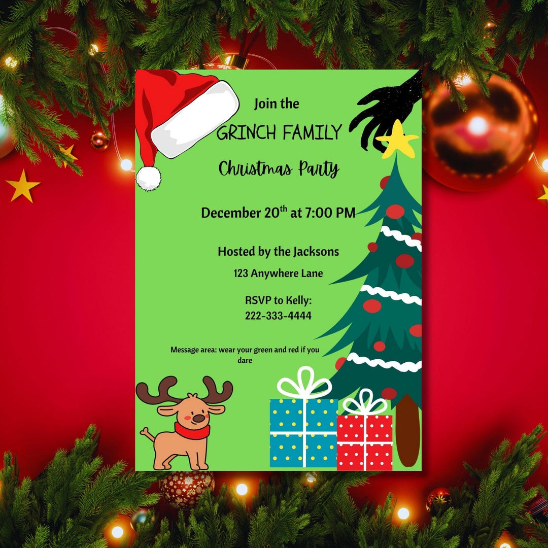 Grinch Christmas Party Invitation editable printable 5x7 instant