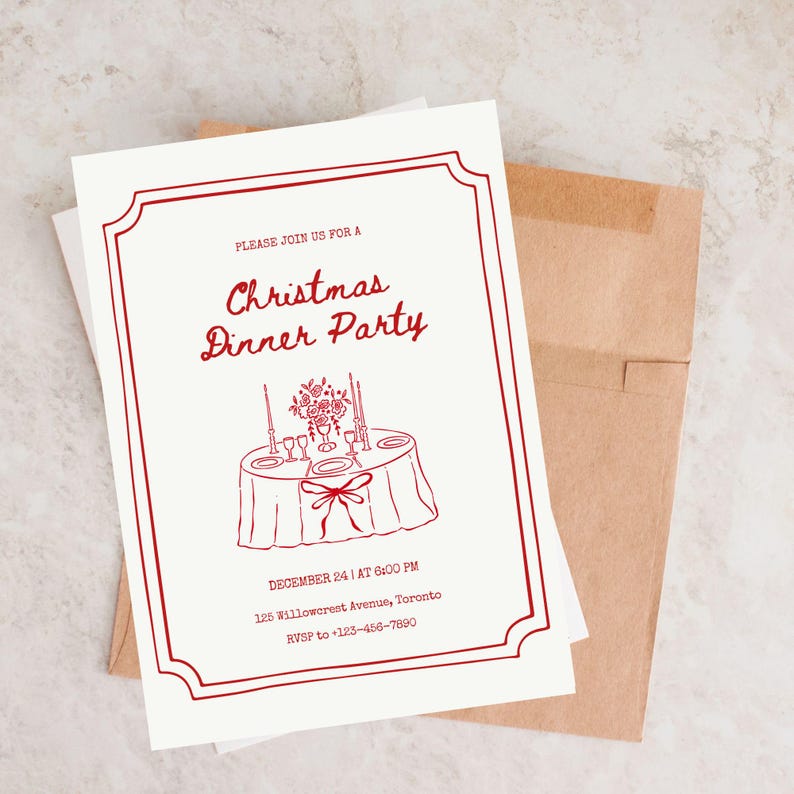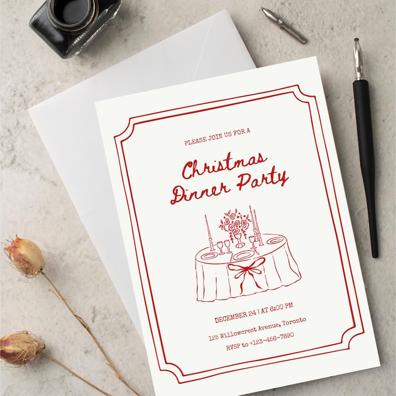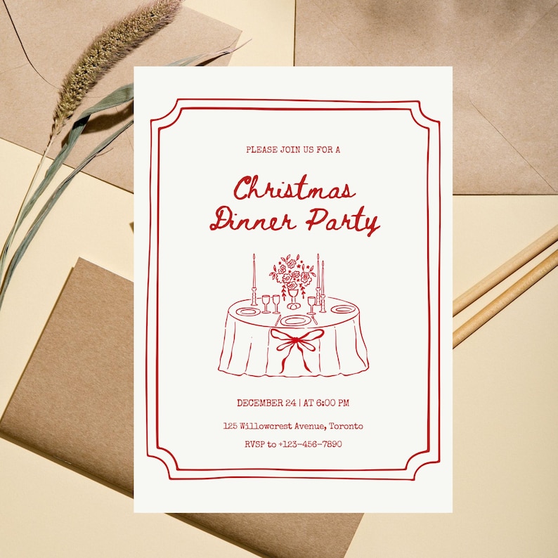 Christmas Dinner Party Invitation Editable Printable Template Instant