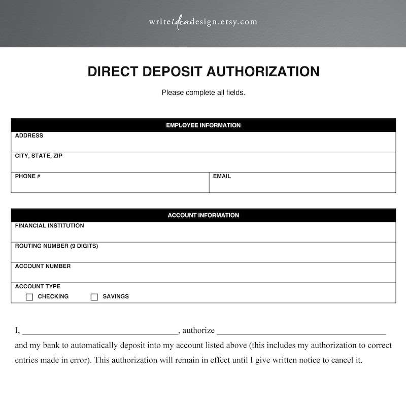 Printable Direct Deposit Authorization Form