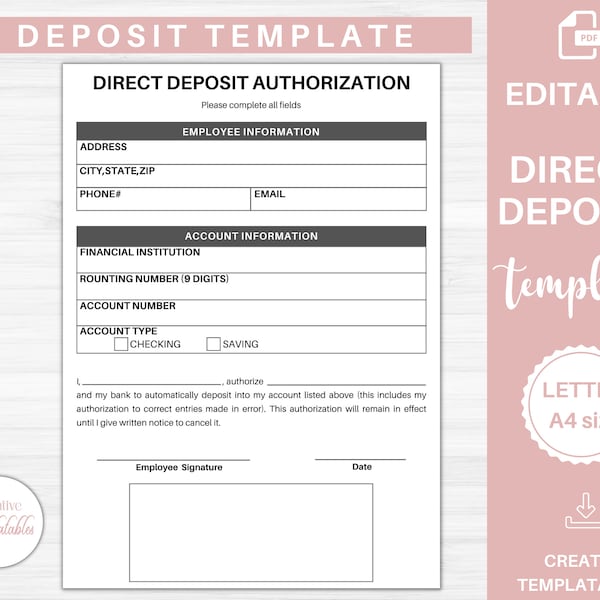 Direct Deposit Form Template