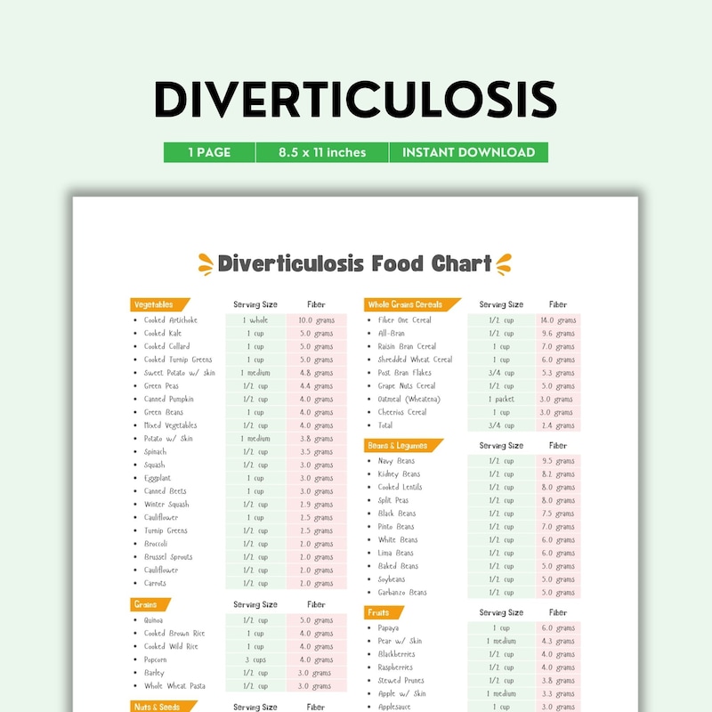 Diverticulosis Food Chart: Nutrition Guide Gut Health (printable PDF