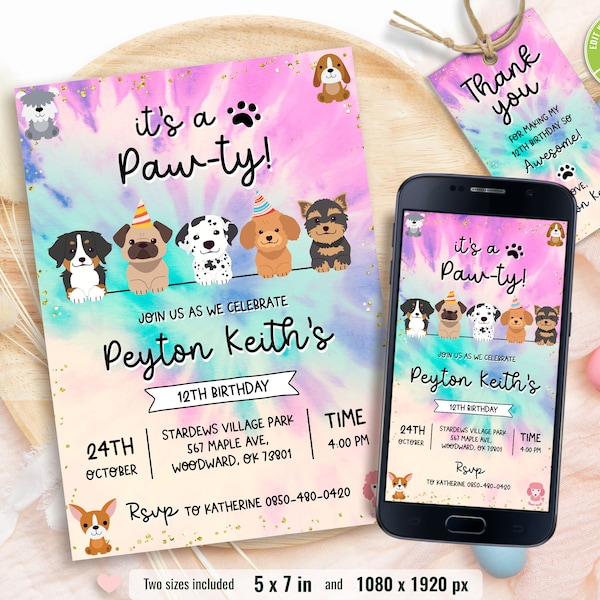 Free Tie Dye Dog Birthday Invitation Template to Edit Online