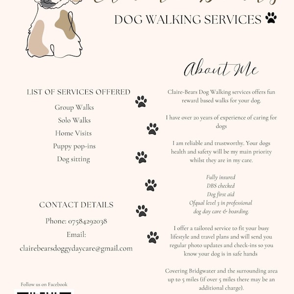 Printable Dog Walking Business Flyer Dog Sitting Flyer Dog Walker Pet