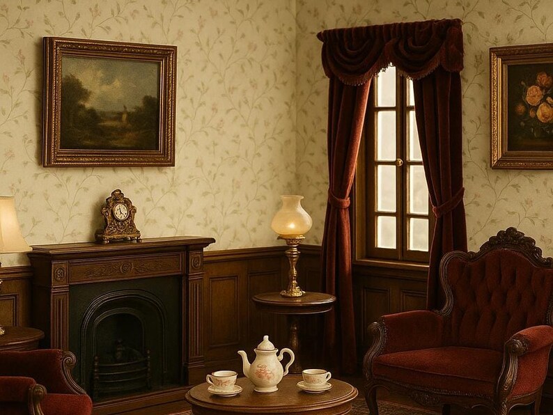 Victorian Floral Dollhouse Wallpaper Printable 1:12 Scale Miniature