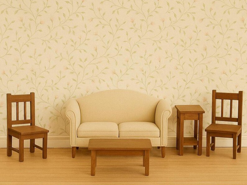 Miniature Retro Bedroom Dollhouse Wallpaper Etsy