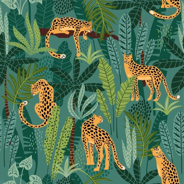 DOLLS HOUSE MINIATURE Miniature Blue Tropical Cheeta Print Wallpaper 1: