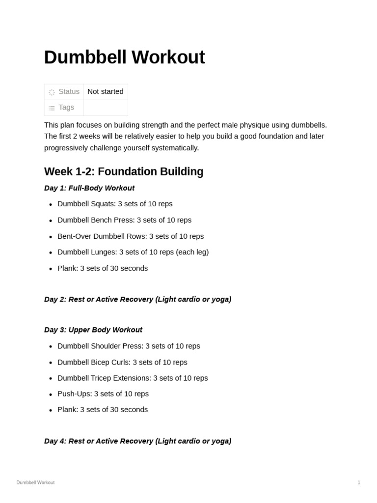Printable Dumbbell Workout Plan Pdf Printable Templates