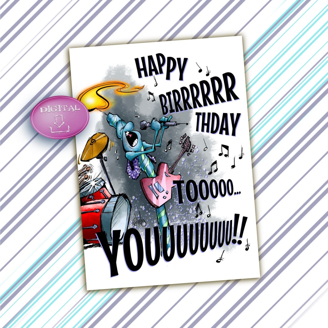 Humorous Birthday Digital Printable E card rockstar Serenade Etsy