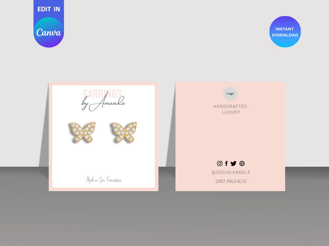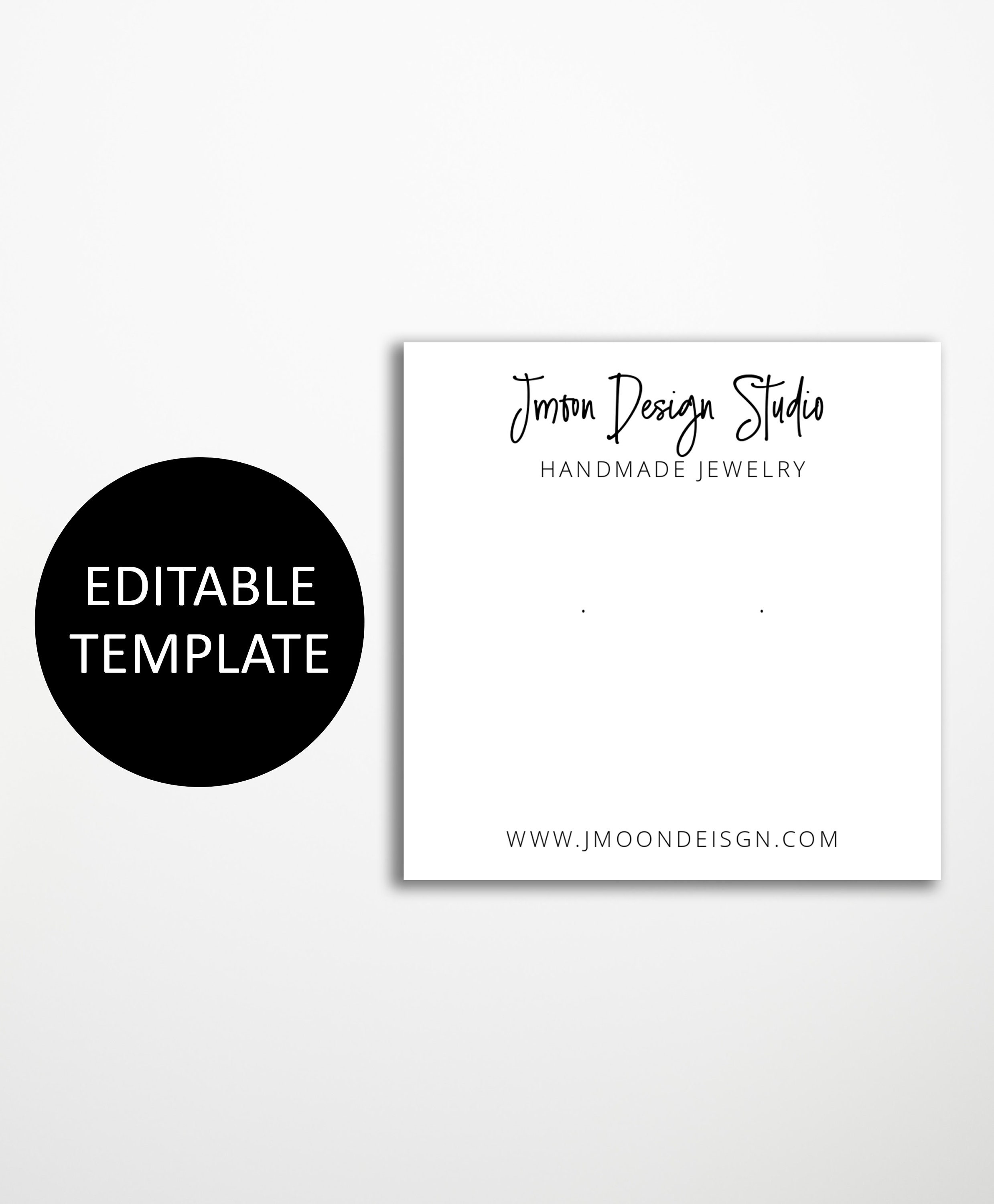 Editable Earring Card Template Jewelry Display Card Printable Earring