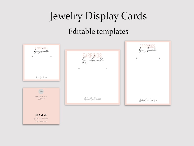 Editable Jewelry Display Card Templates Printable Earring Card Bundle