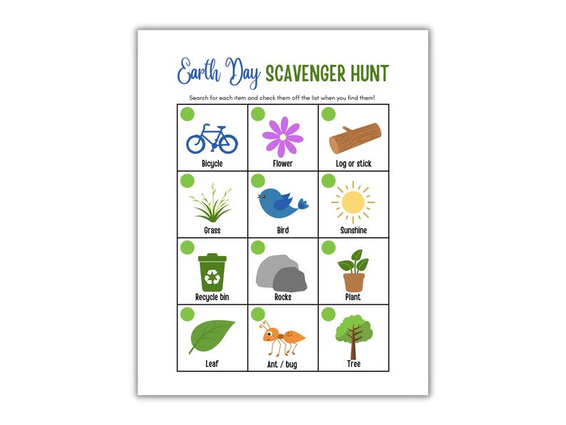 Printable earth day scavenger hunt Artofit
