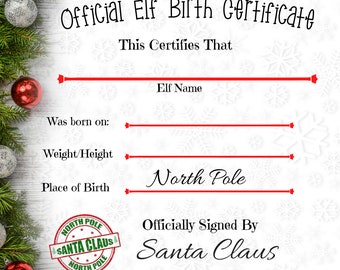 Official Elf Birth Certificate Digital Download PNG Etsy Birth