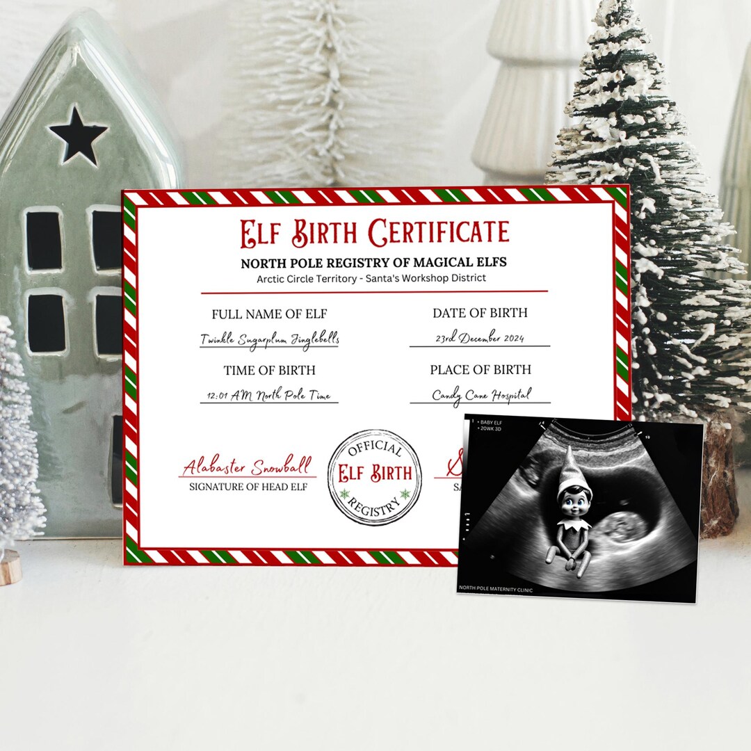 Printable Baby Elf Announcement Elf Birth Certificate Ultrasound