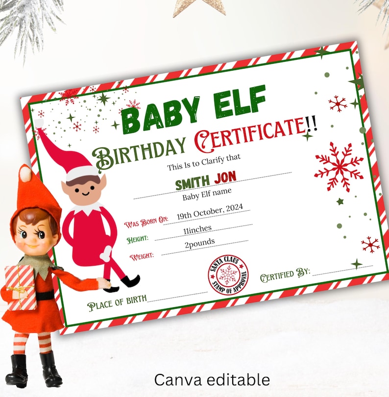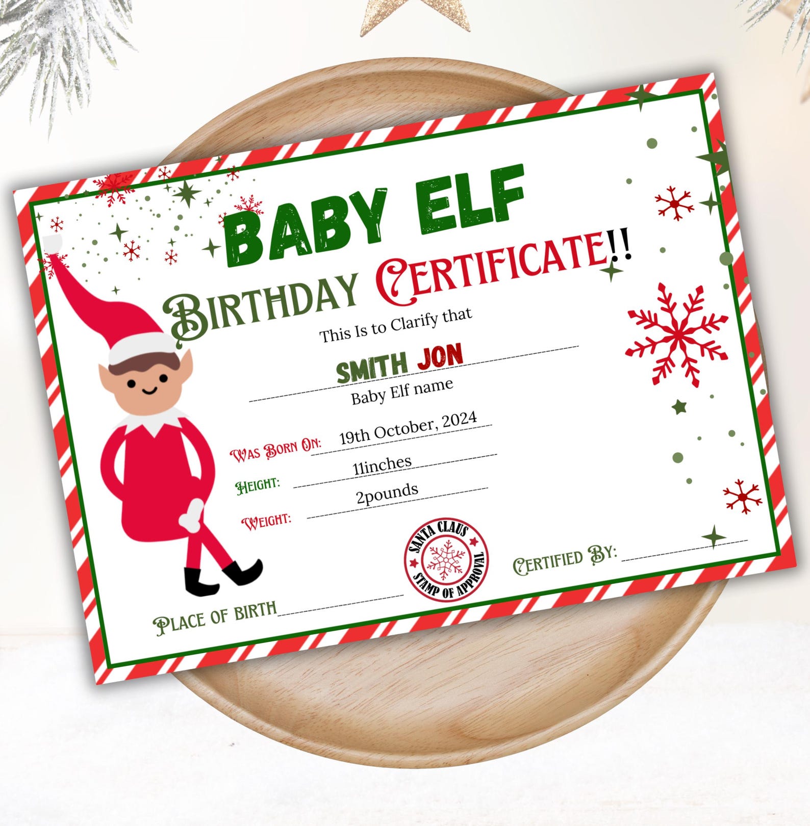 Editable Christmas Baby Elf Birth Certificate Printable Editable