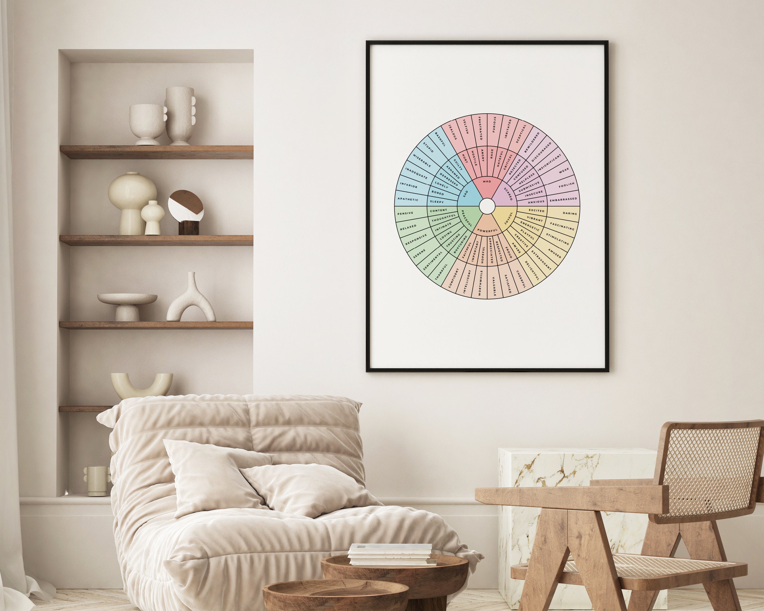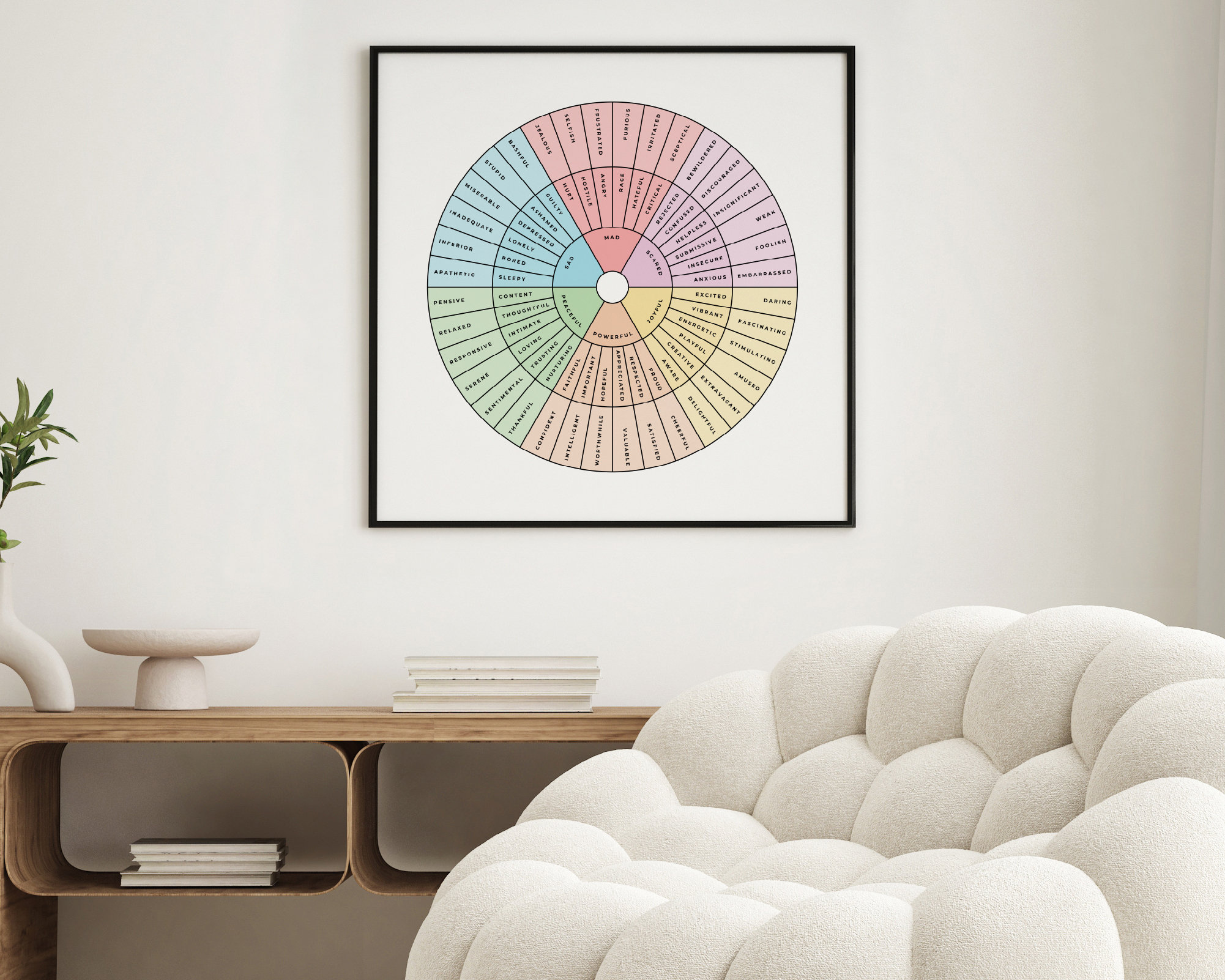 Feelings Wheel / Emotion Wheel Pastel Black on White Printable