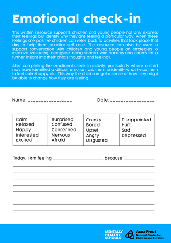 Emotional Check In Worksheets