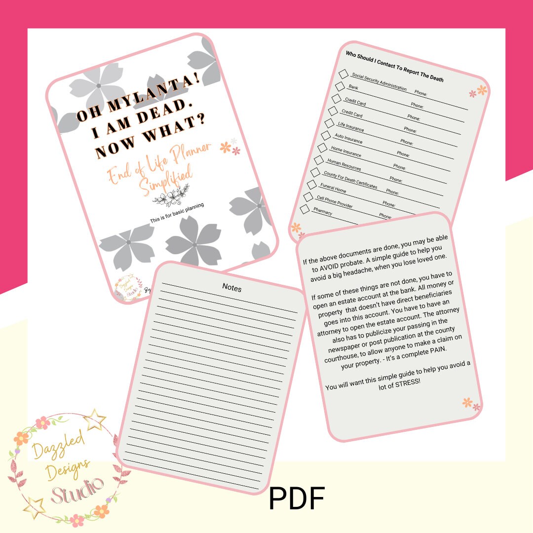 End of Life Check List Planner Designed in PDF Format to Assist You to