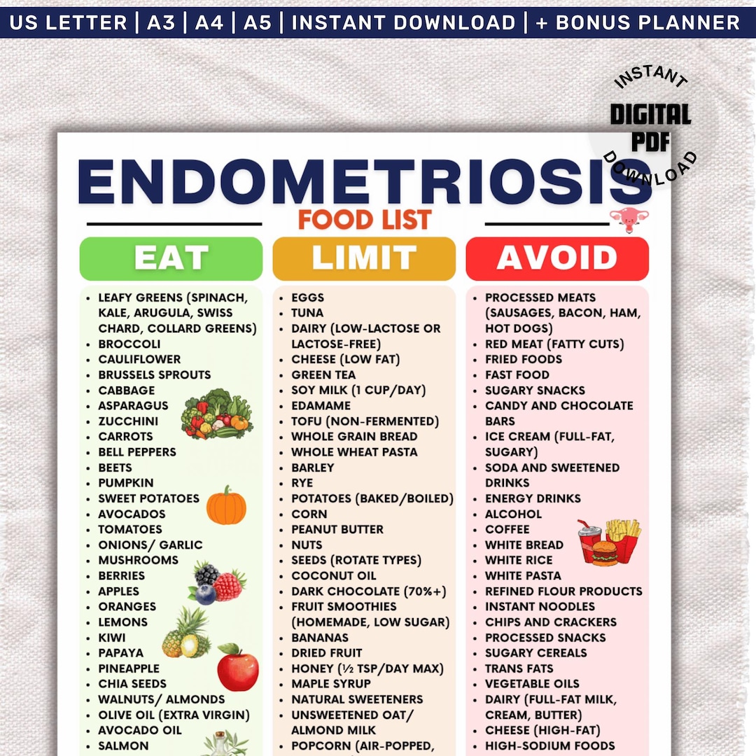 Endometriosis Diet Chart Diet for Endometriosis Printable PDF Anti