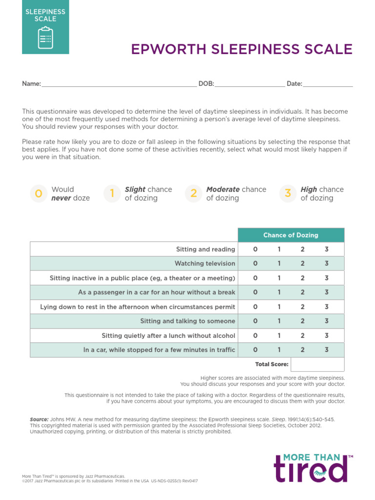 Sleepiness: Epworth Sleepiness Scale Pdf
