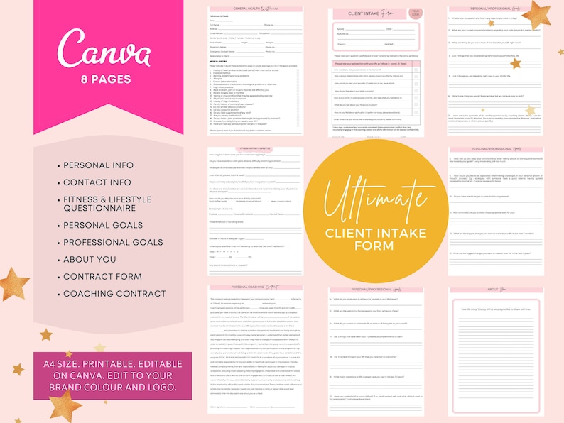 Client Intake Form Canva Template: Coaching Contract (editable) Etsy