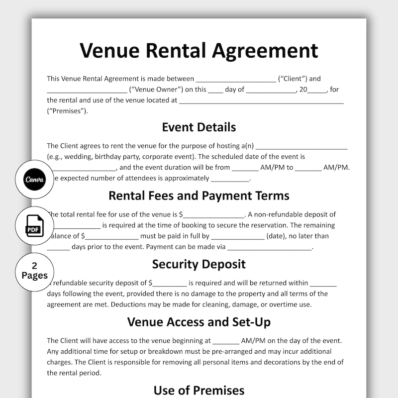 Wedding Contract Template Event planning business Event planning