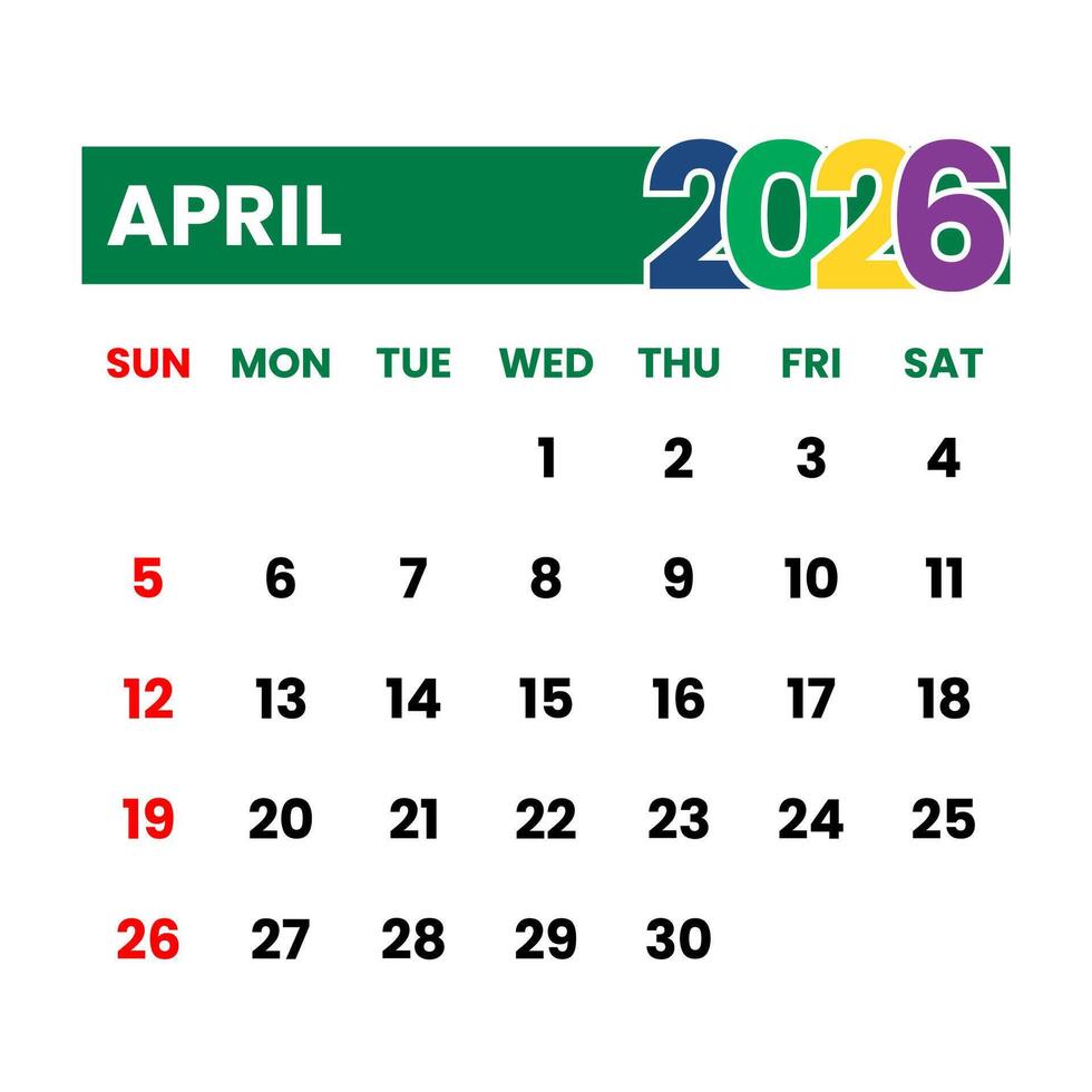 New Year 2026 Calendar April Month Planner Modern and Simple Design