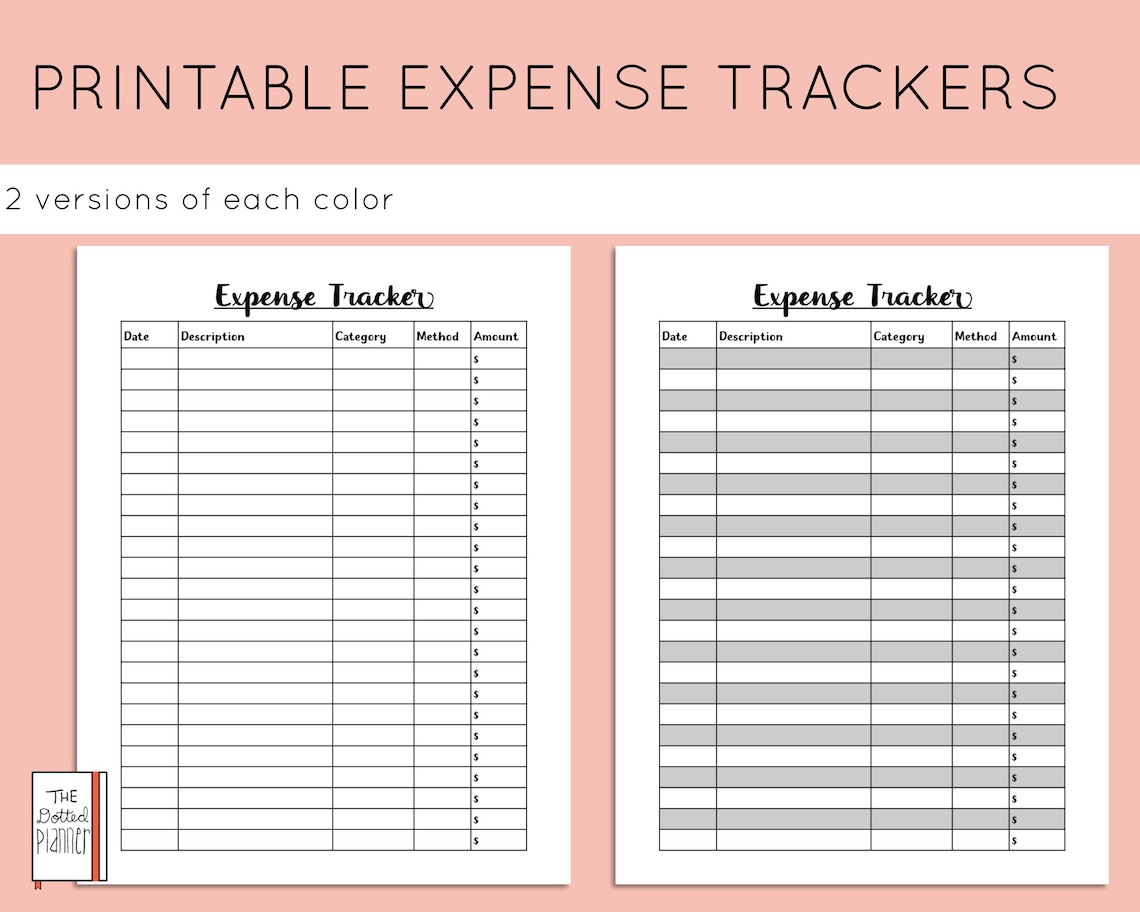 Expense Tracker Printable Expense Log Monthly Expense Etsy
