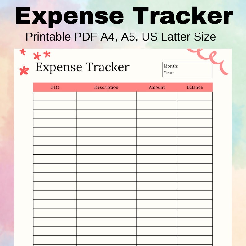 Expense Tracker Printable Simple Expense Tracker Pdf Printable Etsy
