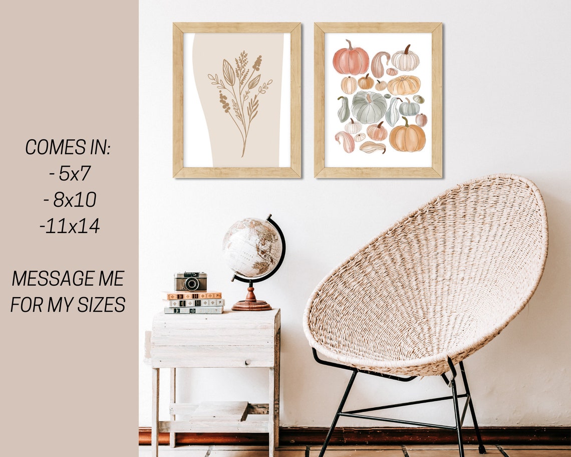 Pumpkin Wall Art Printable Fall Decor Neutral Fall Prints Etsy