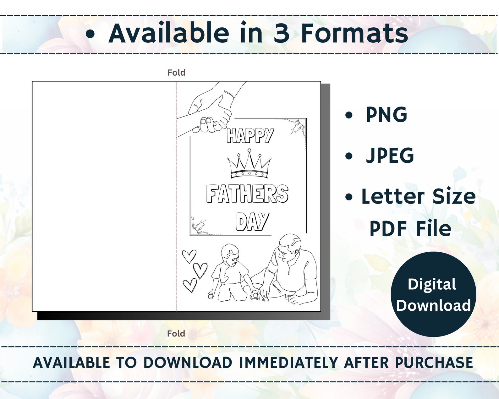Printable Fathers Day Coloring Card Fathers Day Card Greeting Card