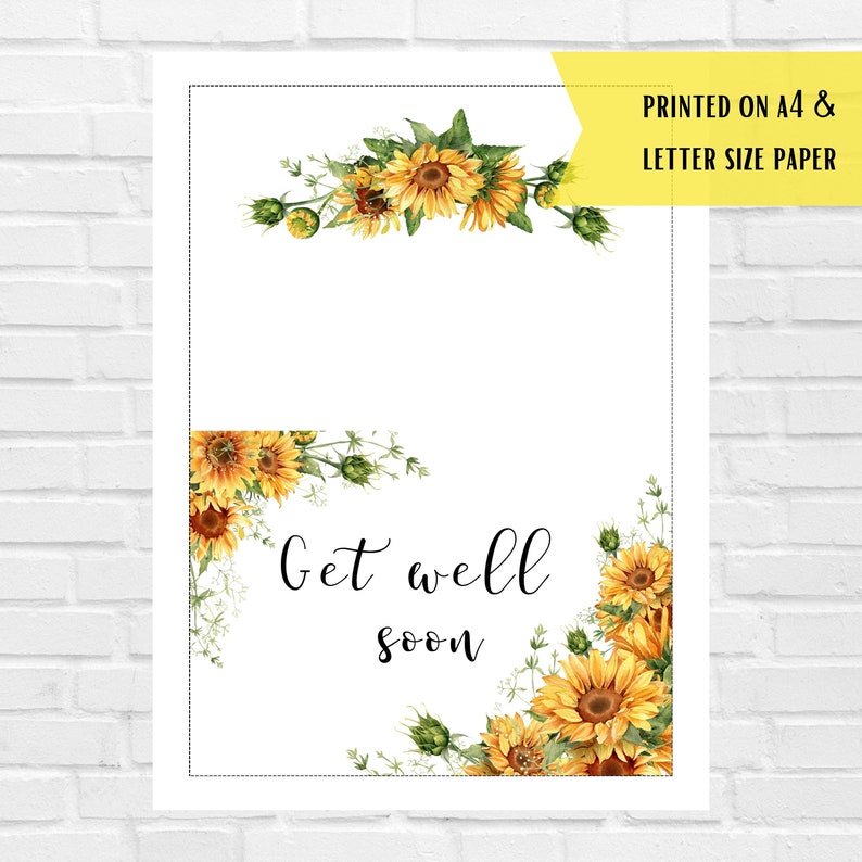 Sunflower Get Well Soon Card Printable Feel Better Card Digital