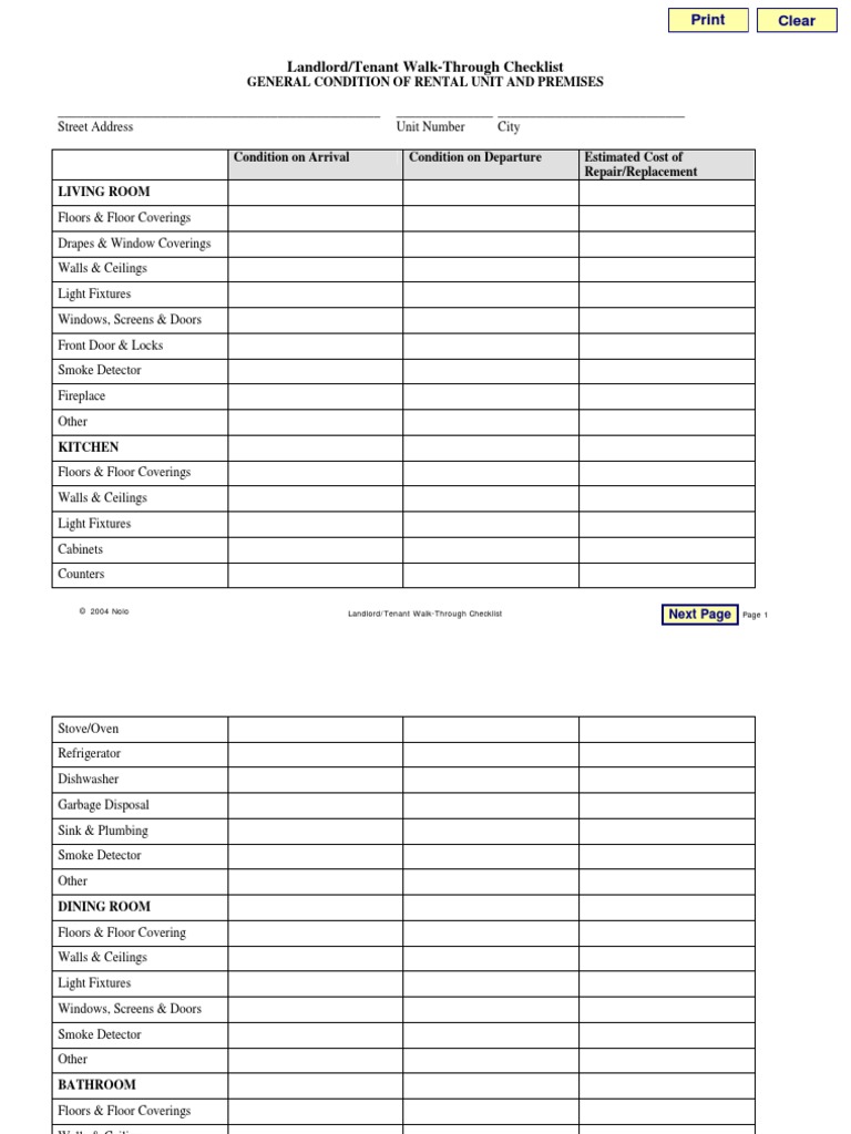 Printable Final Walk Through Checklist Printable And Enjoyable Learning