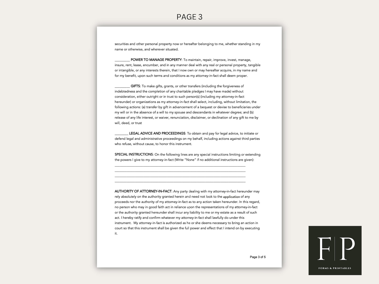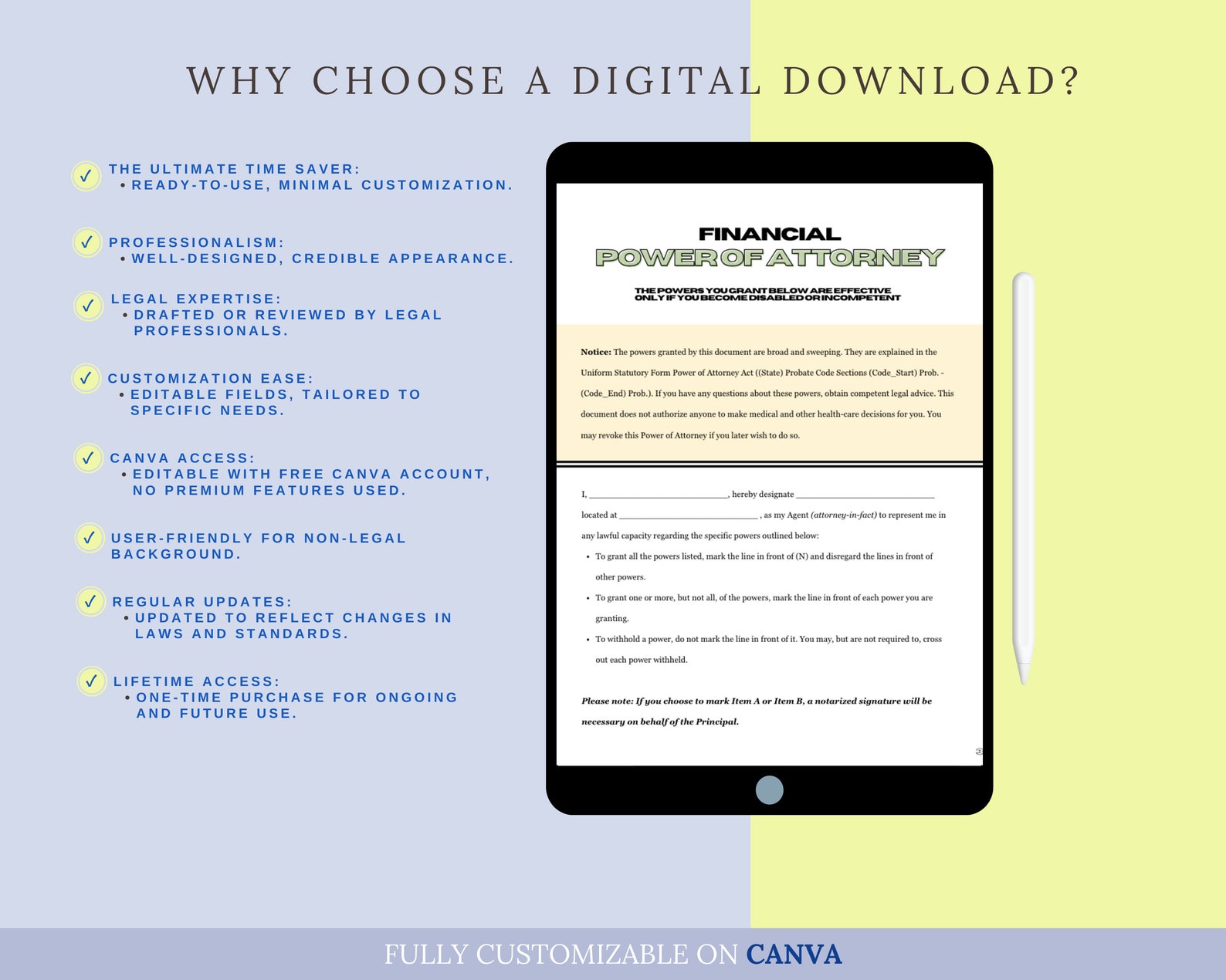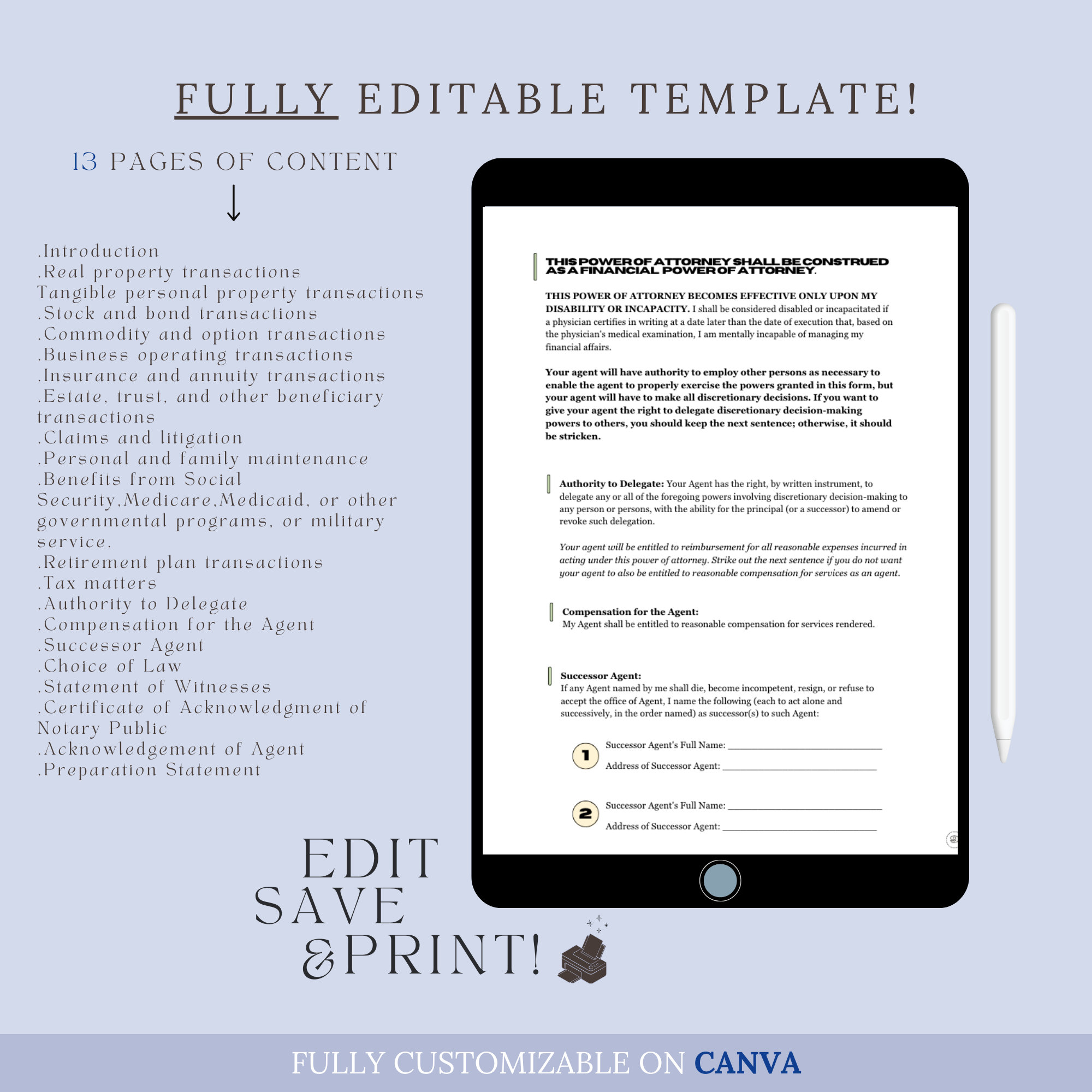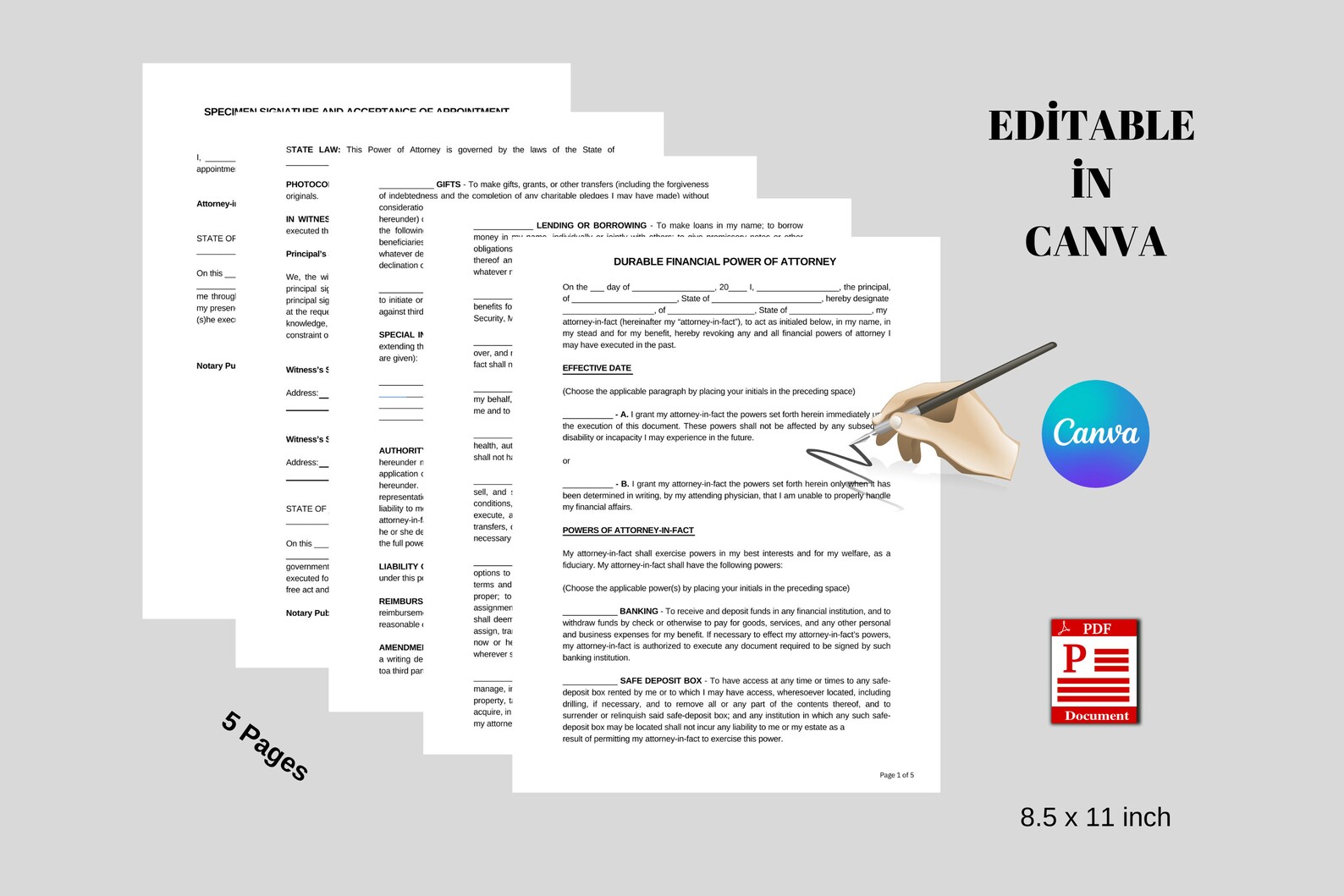 Printable Durable Financial Power of Attorney Form (editable Canva