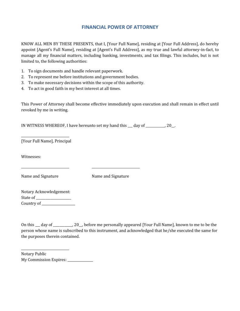 Financial Power Of Attorney Form Templates at allbusinesstemplates com