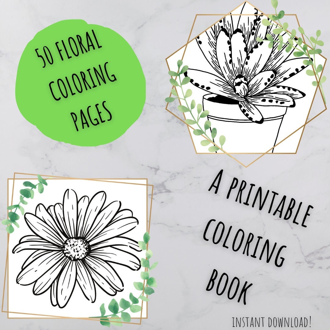 Floral Coloring Pages Coloring Page Bundle 50 Printable Etsy