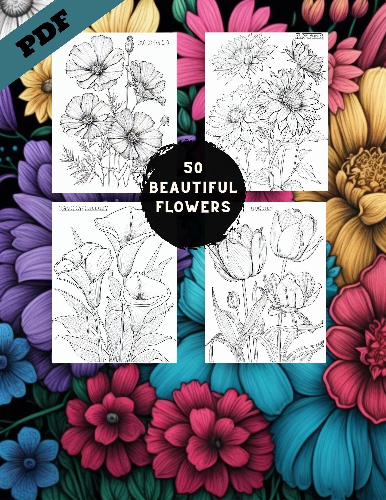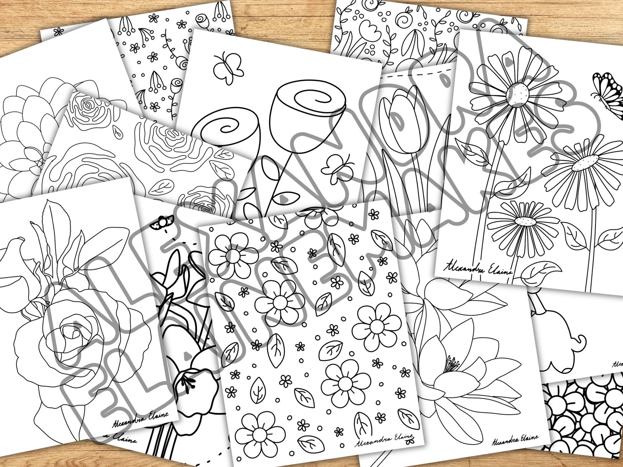 Floral Coloring Pages 50 Printable Pages Etsy