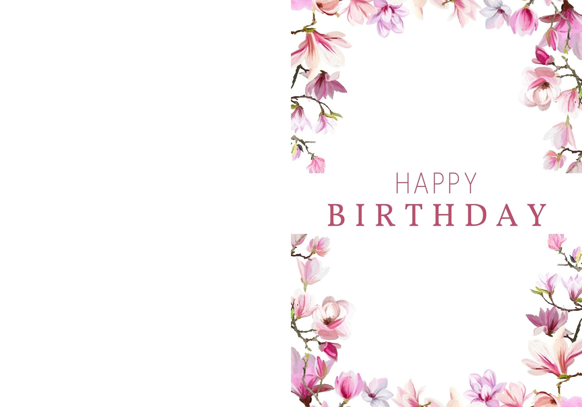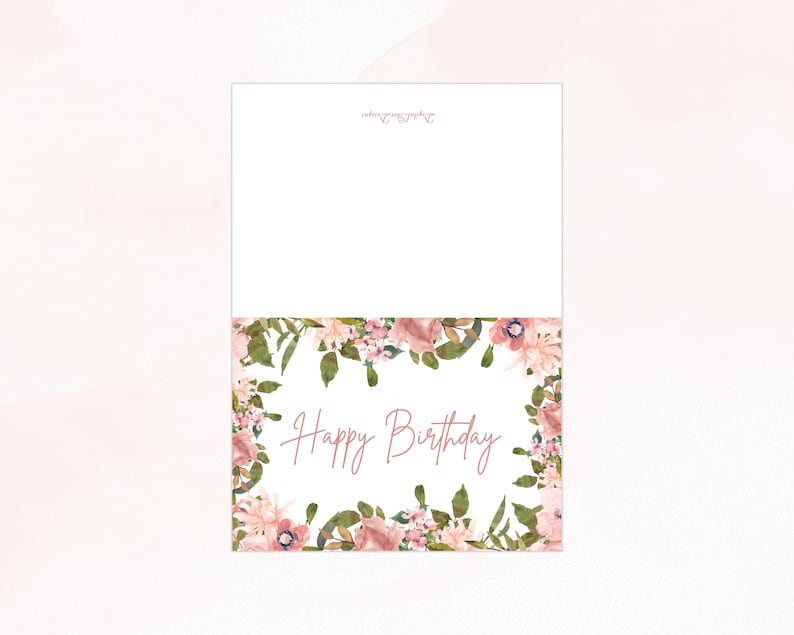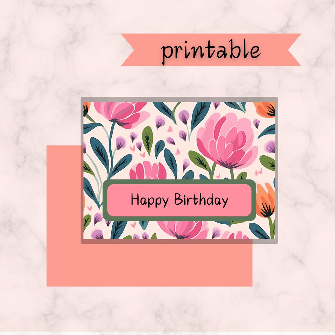 Happy Birthday Printable Floral Greeting Card Blank 5x7 Pink Birthday
