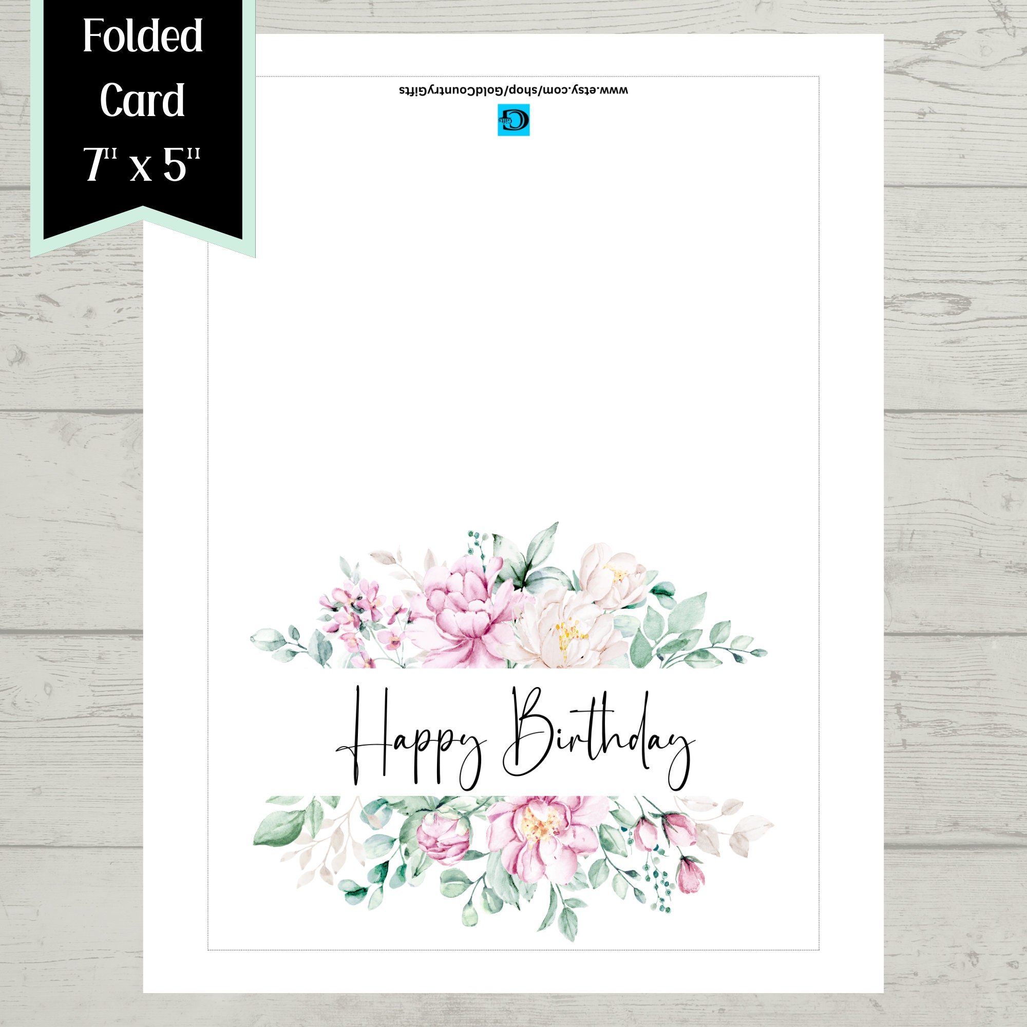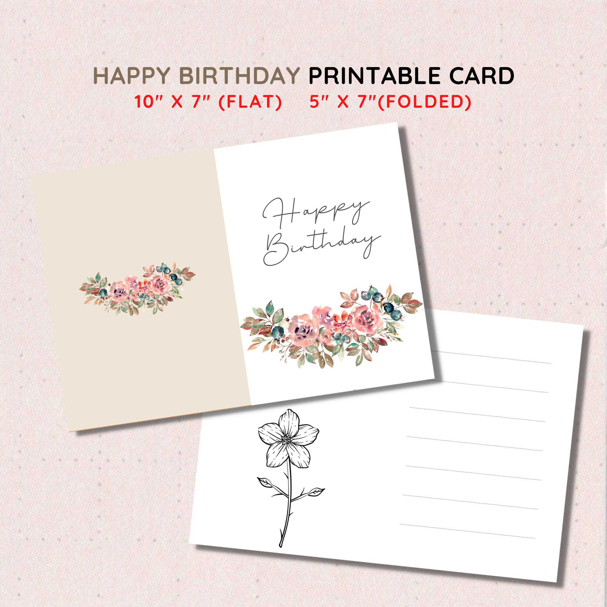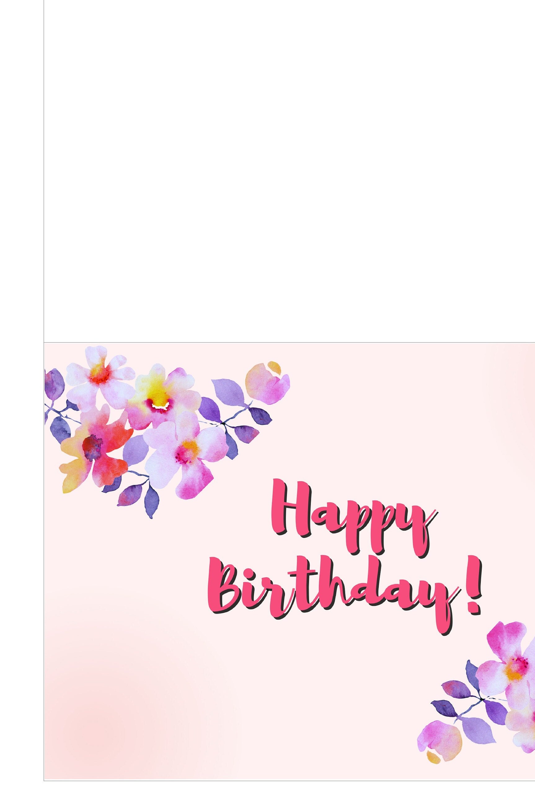 Happy Birthday Printable Floral Greeting Card Blank 5x7 Pink Birthday