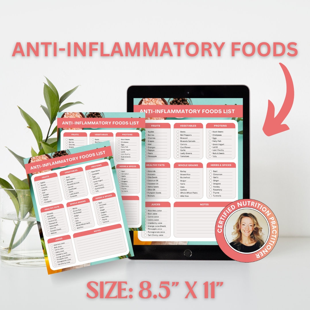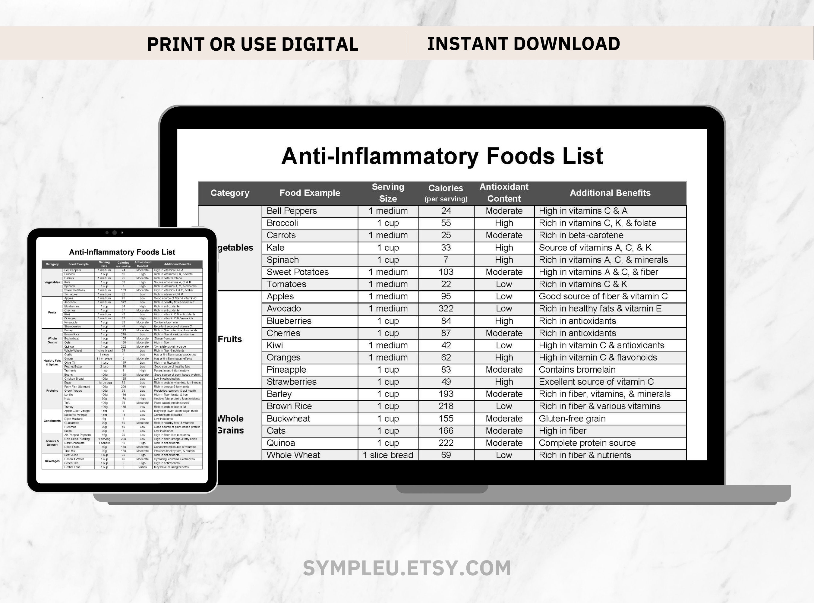 Anti inflammatory Food List Printable PDF Grocery for Anti